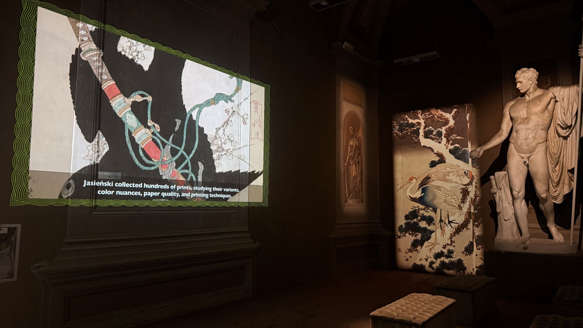 Più di duecento opere, provenienti dal Museo Nazionale di Cracovia, permettono di attraversare le diverse stagioni della sua produzione, dai primi lavori fino alla piena maturità. Dopo un avvio cronologico, il percorso si apre: viaggi, cascate, paesaggi segnano uno spostamento dell’attenzione. Con le Trentasei vedute del Monte Fuji questo passaggio diventa evidente. Il Fuji resta un riferimento stabile, mentre in primo piano si dispongono attività quotidiane che costruiscono lo spazio.