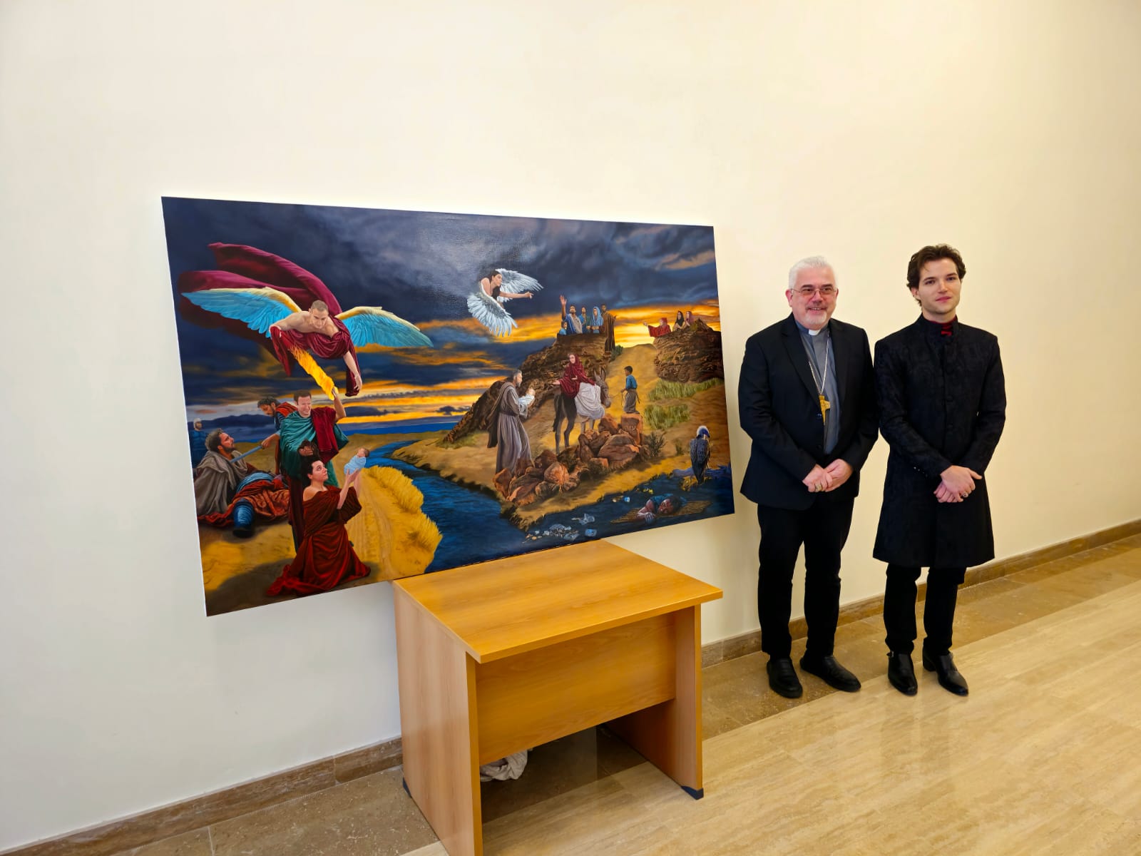 L’evento si è svolto in un clima partecipato e conviviale. Il Cardinale Michael Czerny SJ, tramite le parole di Mons. Jozef Barlaš, ha espresso vivo apprezzamento per l’iniziativa, sottolineando in particolare la profondità dei temi affrontati, in sintonia con la sensibilità del Dicastero e con il suo stesso percorso umano e spirituale. In segno di stima, il Cardinale ha voluto donare all’artista e al suo staff una piccola immagine devozionale raffigurante la Sacra Famiglia in fuga verso l’Egitto, disegno realizzato dalla sua amata nonna intorno al 1930.