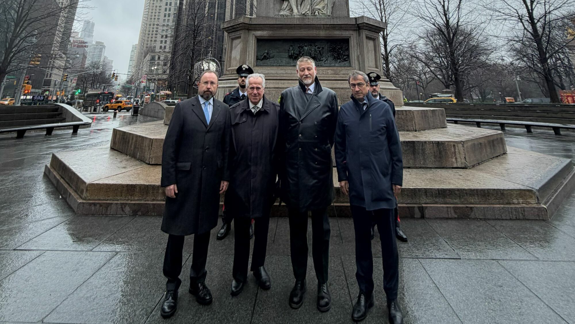 Durante la visita alla statua di Cristoforo Colombo, realizzata nel 1892 e che dà anche il nome alla piazza circolare dove si trova, la Columbus Circle a Manhattan, il ministro Giuli, in compagnia del Console Generale a New York Giuseppe Pastorelli e dell’Ambasciatore d’Italia a Washington Marco Peronaci, ha deposto una corona con una breve cerimonia ufficiale accompagnata dal saluto militare di alcuni Carabinieri presenti.