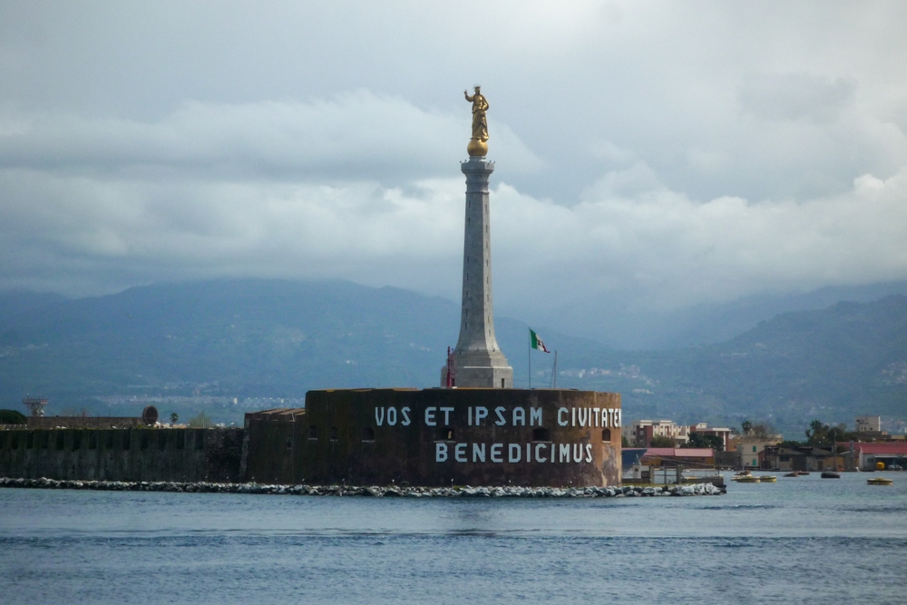 Quella statua, ancora presente all’imboccatura del porto di Messina, realizzata in bronzo dorato, alta 7 metri, poggia su un globo e tiene in mano la Lettera della Madonna, un simbolo di protezione per la città e per i naviganti. Essa è posta, a sua volta, su una stele alta 53 metri, eretta sulla punta del Forte San Salvatore, costruito dagli spagnoli nel 1546. Voluta dai Messinesi, per onorare quella che era stata scelta come Patrona della loro città, la statua è stata inaugurata con una cerimonia unica nel suo genere, divenendo un evento storico per il suo tempo. Al momento della sua inaugurazione, infatti, avvenuta il 12 agosto 1934, il Papa Pio IX, da Castel Gandolfo (Roma), azionando un sistema radio a onde ultracorte, ideato e messo in opera dal famoso scienziato italiano Guglielmo Marconi, ha illuminato, a distanza di centinaia di chilometri, la scritta votiva (Vos et ipsam civitatem benedicimus), posta alla base della stele, e la corona che si trova sulla testa della statua della Madonna. La statua della Madonnina del porto, com’ è chiamata dai Messinesi, da quel momento è diventata monumento simbolo della città.