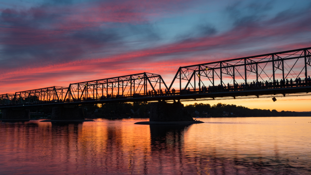Un ponte pedonale sul fiume Delaware unisce due piccoli centri di stati diversi in un unico percorso tra eventi stagionali, treni storici e turismo di prossimità