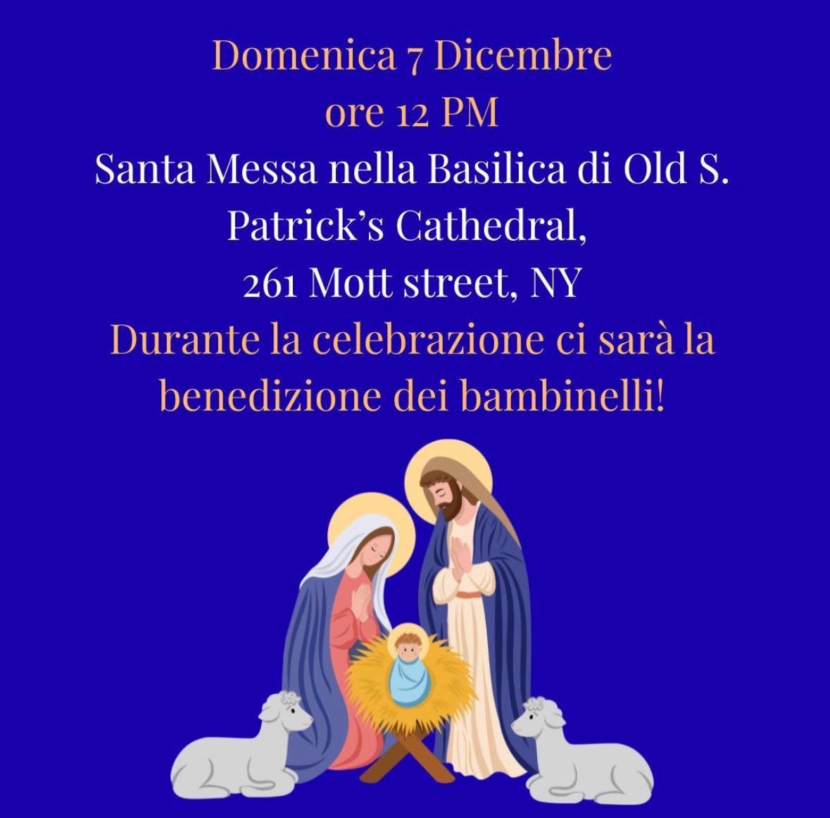 La comunità cattolica italiana di Manhattan organizzerà, per domenica 7 dicembre, una serie di iniziative legate alle tradizioni natalizie. La Messa in italiano sarà celebrata alle 12 nella chiesa di Old St. Patrick, a Nolita, mentre per i bambini è previsto l’ultimo incontro di catechismo prima di Natale alle 10.40 nei locali parrocchiali di Prince Street. Durante la funzione sarà effettuata la benedizione dei “bambinelli”, una pratica diffusa nelle parrocchie italiane in prossimità dell’Avvento, in cui le famiglie portano da casa la statuina del presepe che rappresenta Gesù bambino per ricevere una benedizione prima della collocazione nella scena natalizia. Il rito è stato introdotto a Roma negli anni Settanta e oggi è presente anche in molte comunità cattoliche italiane all’estero.