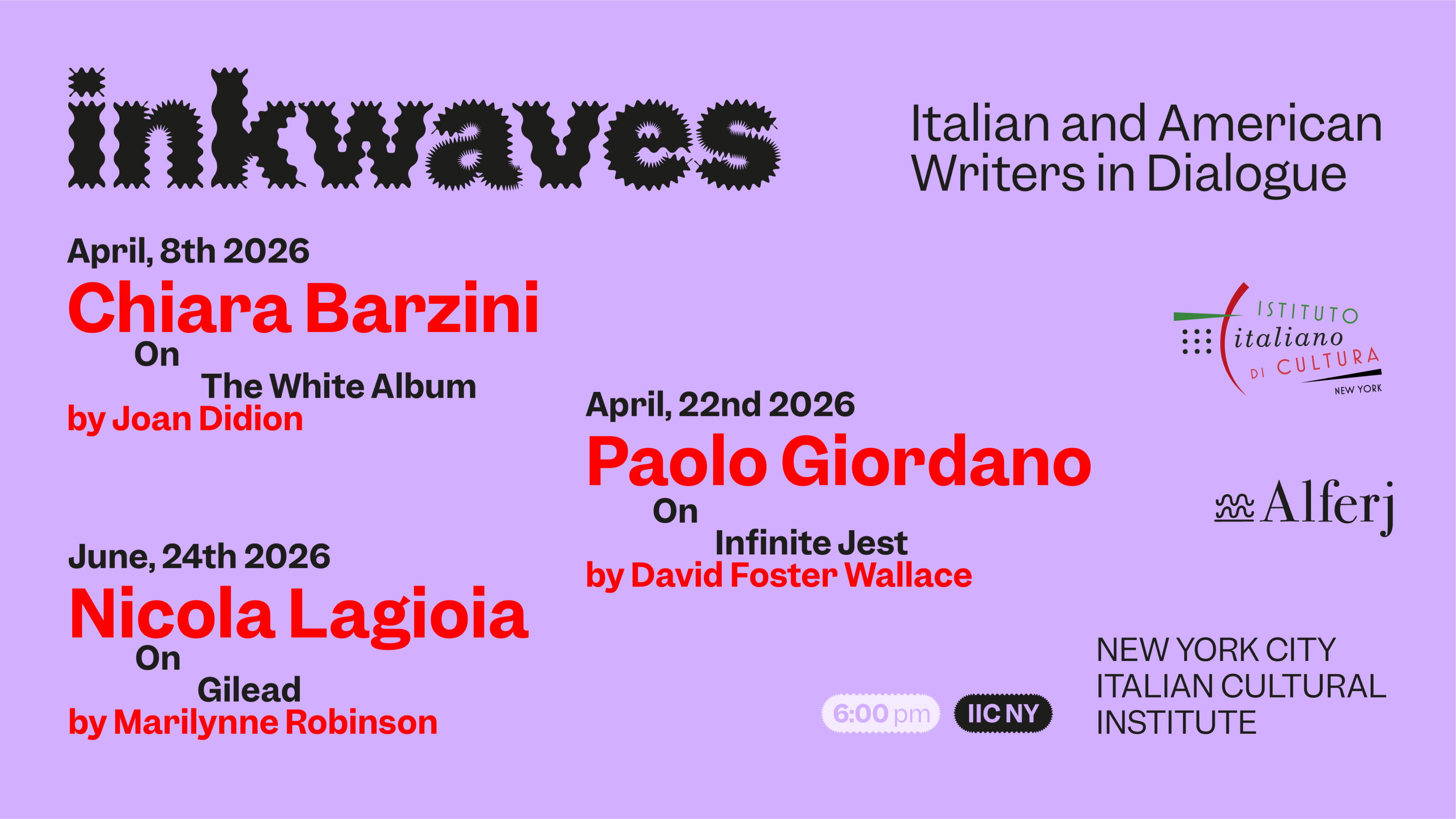 Inkwaves è infatti un ciclo di incontri all’interno del quale si chiederà a scrittori italiani contemporanei di raccontare un libro, scritto in inglese o in italiano, che ha inciso in modo rilevante sulla loro formazione. Una conversazione critica e personale, insomma, incentrata sulla lettura come esperienza fondativa. Il progetto è organizzato dall’Istituto Italiano di Cultura di New York insieme all’agenzia letteraria Alferj e prevede la partecipazione, accanto agli autori, di accademici, traduttori ed editori statunitensi.