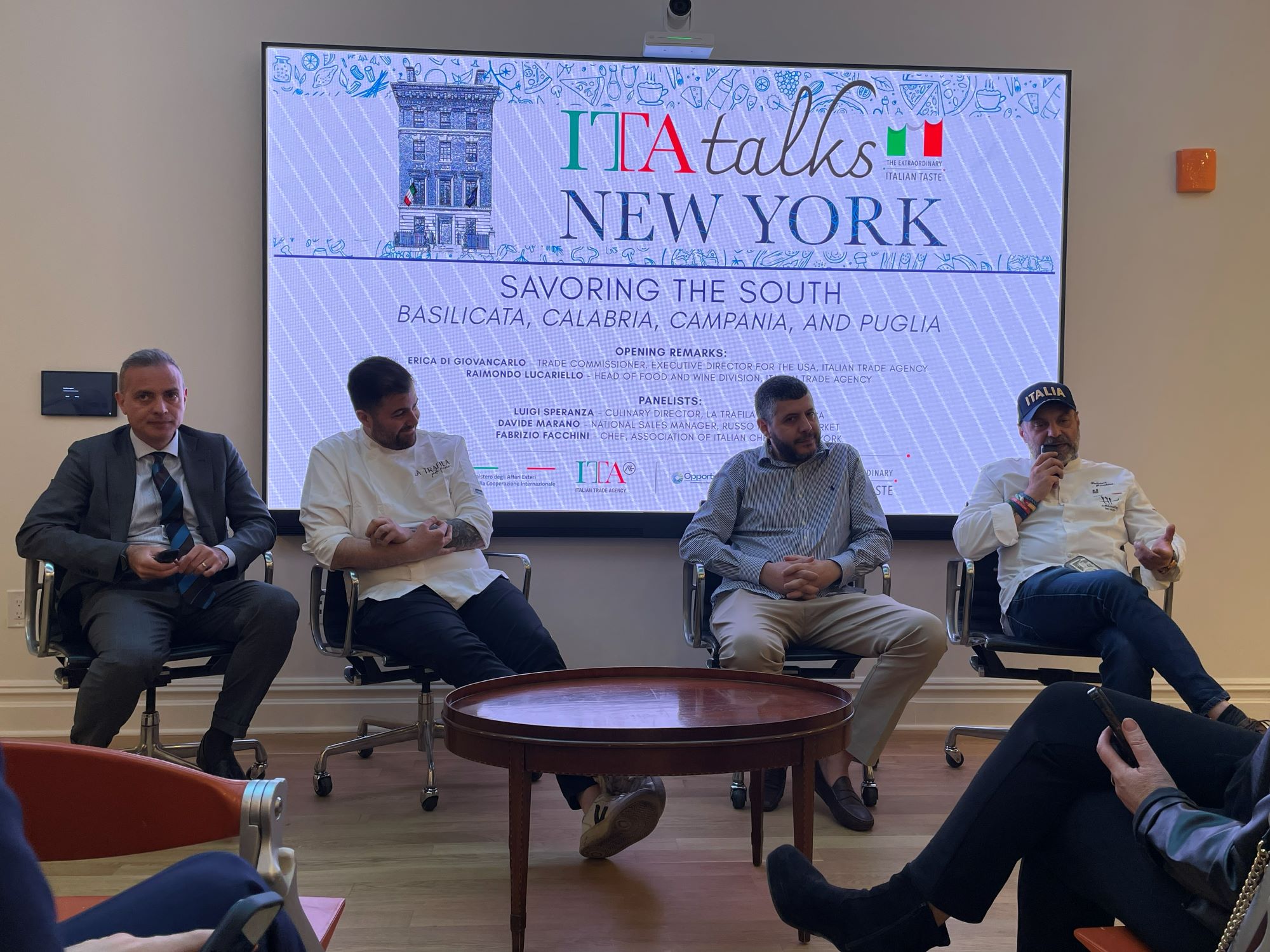 Mercoledì 8 aprile, nella sede della Italian Trade Agency al 33 di East 67th Street a Manhattan, si è tenuta la prima edizione di ITA Talks 2026, il ciclo di incontri promosso dall’agenzia italiana per il commercio estero di New York. L’appuntamento, “Assaporando il Sud”, ha acceso i riflettori sulle tradizioni culinarie di Calabria, Campania, Basilicata e Puglia. Un racconto corale che ha portato in città sapori, storie e identità del Mezzogiorno.