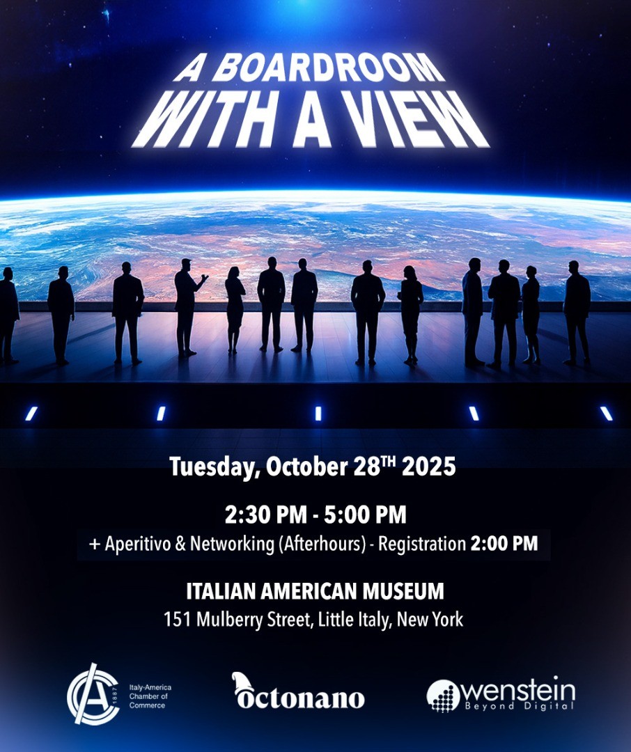 Si terrà oggi, lunedì 28 ottobre, presso l’Italian American Museum di Mulberry Street, il primo appuntamento della nuova serie di incontri“A Boardroom with a View”, promossa dalla Italy-America Chamber of Commerce (IACC) in collaborazione con Octonano e Weinstein Beyond Digital.