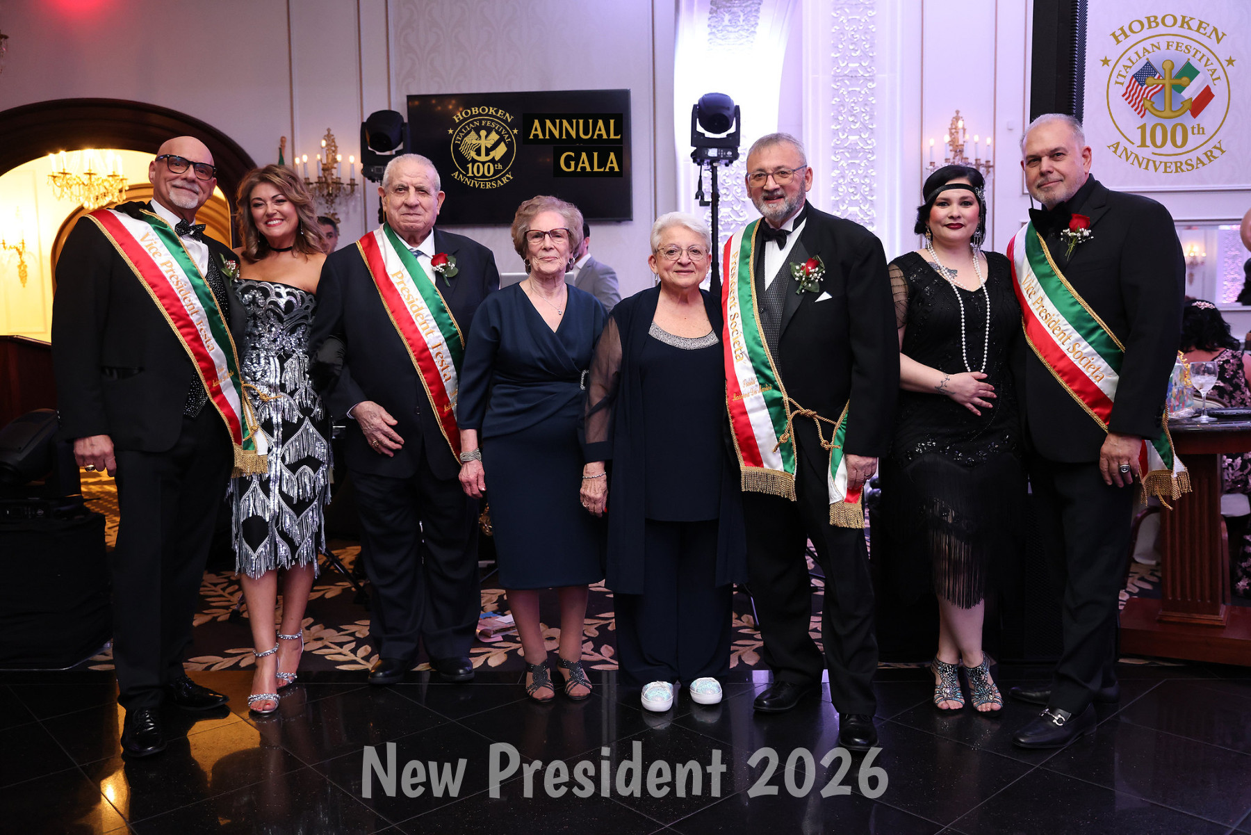 E poi, come in ogni festa che si rispetti, è arrivata la sorpresa: una torta monumentale realizzata da Buddy Valastro, il Cake Boss più famoso d’America, orgogliosamente legato alle sue radici italiane. Quando la colonna sonora scelta per il taglio della torta è stata il brano scritto dalla “Dio Lo Vuole Band” per i 100 anni dell’Hoboken Italian Festival – un’idea di Roberto Pansini – l’emozione ha attraversato la sala come un brivido.