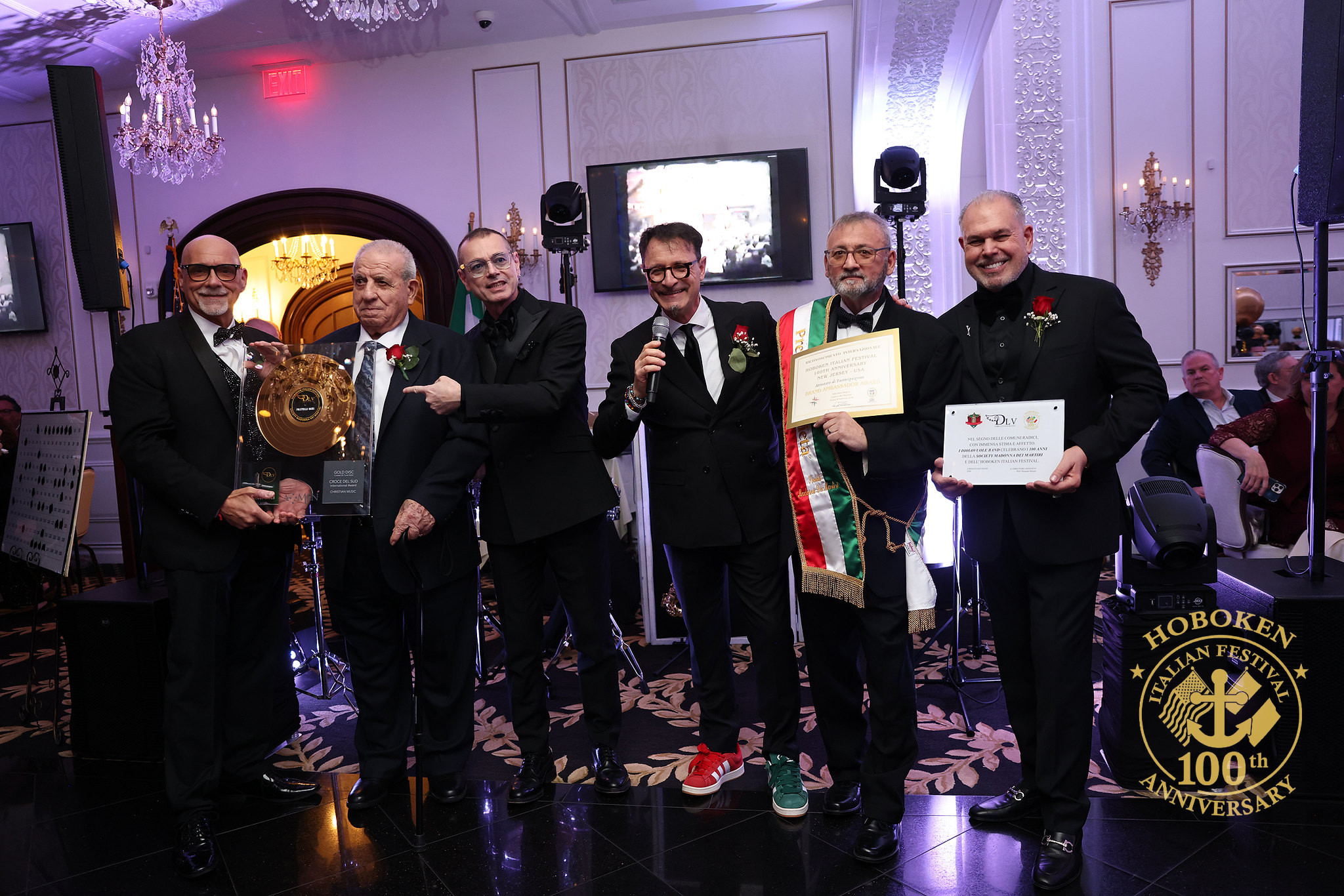 I Presidenti hanno ricevuto da Roma un attestato di merito per la valorizzazione del “Made in Italy negli USA” e un disco d’oro “edizione unica” dedicato ai 100 anni, firmato dalla Dio Lo Vuole Band, che tornerà sul palco a settembre per il grande evento.