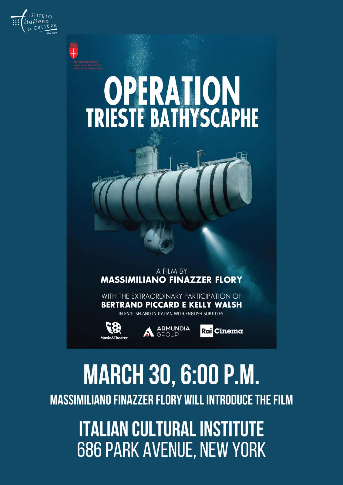 A più di sessant’anni dall’impresa del batiscafo Trieste, il regista Massimiliano Finazzer Flory ne ripercorre la storia in Operazione Batiscafo Trieste, un docufilm a metà tra ricostruzione storica e riflessione culturale. Il film, commissionato dal Comune di Trieste e prodotto da Rai Cinema, sarà presentato il 30 marzo a New York, all’Istituto Italiano di Cultura, con un’introduzione del Direttore dell’Istituto Claudio Pagliara ed in un contesto che richiama il doppio legame – italiano e americano – di una delle esplorazioni più significative del Novecento. Abbiamo intervistato il regista per capire come ha costruito il racconto e quali prospettive apre il progetto.