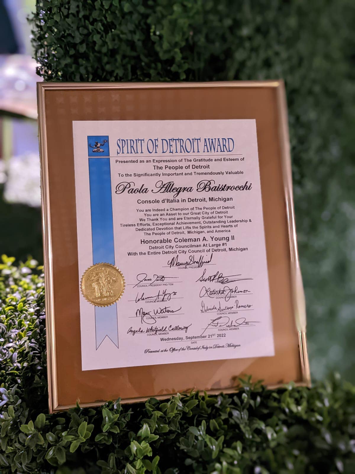 Uno dei momenti più emozionanti è stato ricevere lo Spirit of Detroit Award da parte della città, per la mia leadership e i traguardi raggiunti a favore di Detroit e della sua popolazione. E se questo può sembrare un traguardo, in realtà ripensando al 2022 lo vedo come il prologo di una storia di rinascita: l’anno in cui abbiamo gettato le basi di tutto ciò che sarebbe venuto dopo. È stato l’anno in cui Detroit ha imparato a parlare un po’ più italiano… e in cui anch’io ho imparato a capire Detroit.